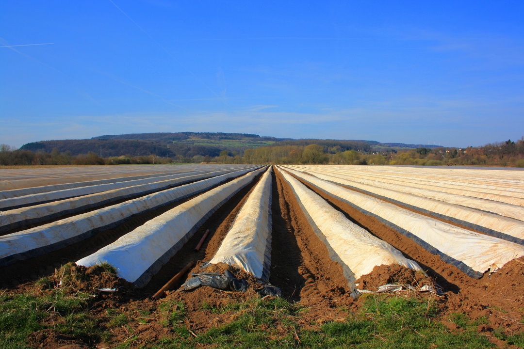 Szparagi bielone rosną w wałach ziemi, które usypuje się nad rzędami roślin. Wypustki zbiera się zanim przebiją powierzchnię gleby i należy wyciąć szparaga specjalnym, ostrym nożem. Zbiory szparagów bielonych przeprowadza się dwukrotnie w ciągu dnia: wcześnie rano i popołudniem/wieczorem.